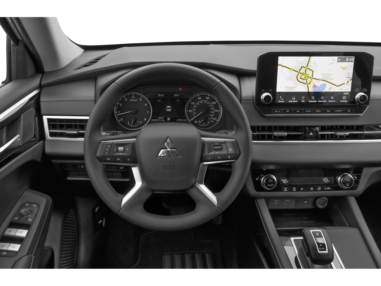 - Radio: AM/FM 9.0" Navigation w/Smartphone Link -inc: 6 speakers, Apple CarPlay, Google Android Auto, SXM all-access and SXM traffic and travel link w/90-day subscription, Mitsubishi Connect, HD Radio, smartphone wireless charger, Bluetooth wireless technology, steering wheel controls for phone, audio and voice recognition and USB ports