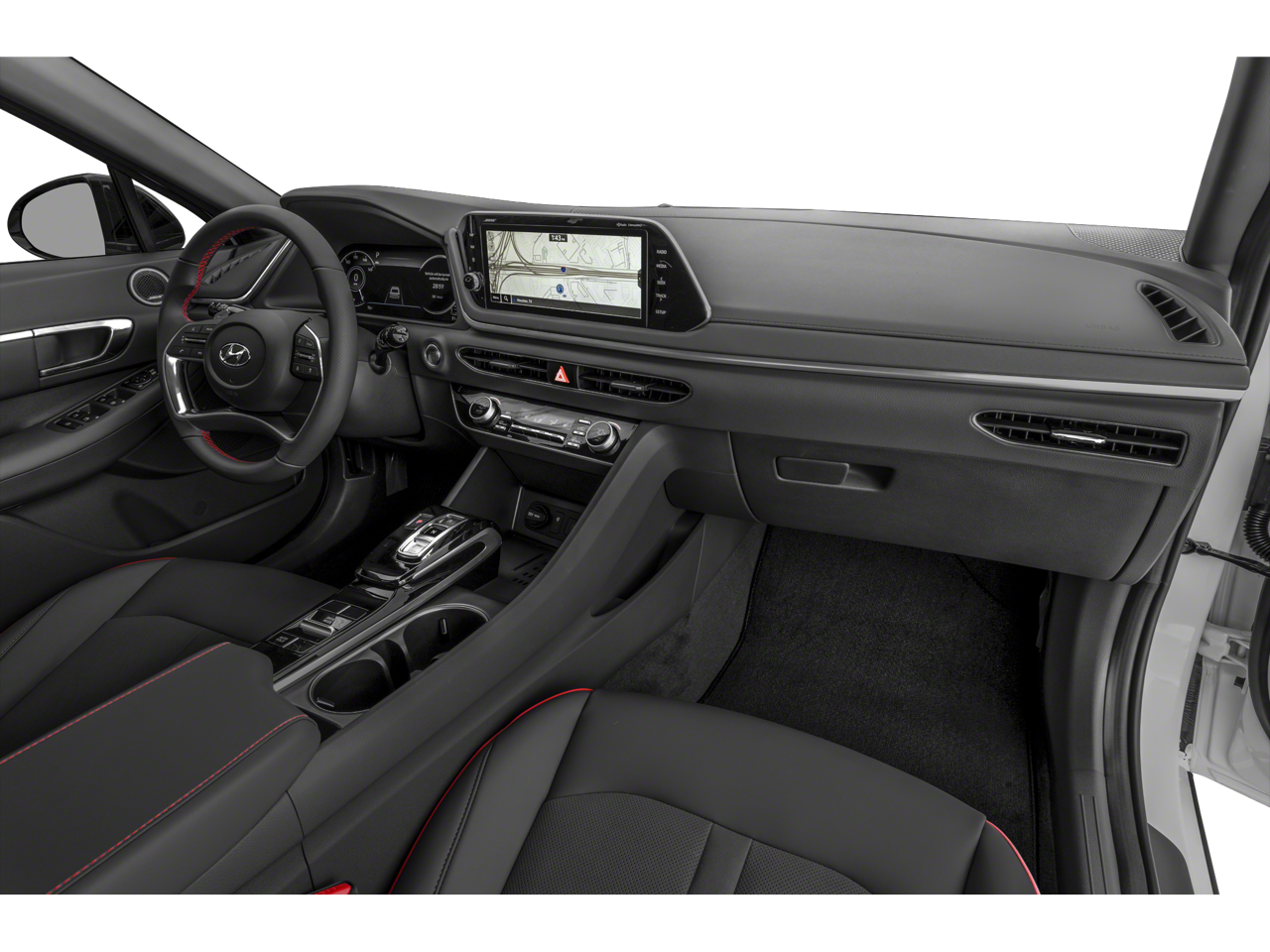 - Radio: AM/FM/MP3/HD/SiriusXM Display Audio w/Nav -inc: 10.25" color touchscreen, Bose premium audio w/12 speakers (1 center channel, 2 dash, 2 front tweeters, 4 door mounted, 2 rear mounted speakers plus 1 rear mounted subwoofer), dynamic voice recognition, integrated Bluetooth®, Blue Link connected car system, Apple CarPlay, Android Auto, USB, diversity antenna for navigation and HERE HD traffic