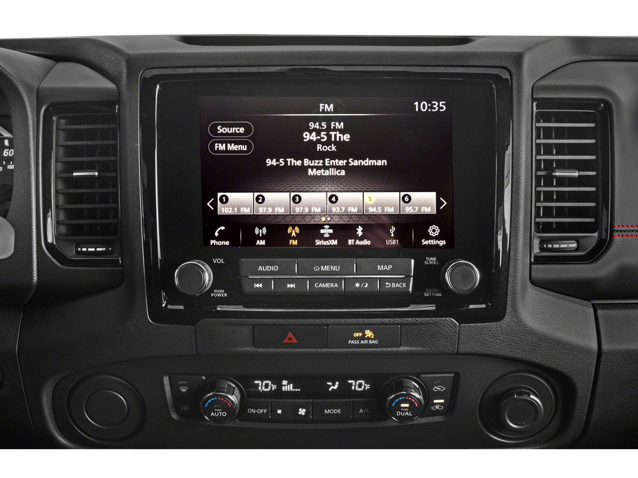 - Radio: SXM/AM/FM/AUX/USB Audio System w/6 Speakers -inc: 9.0" color touch-screen display, wireless Apple CarPlay, Android Auto, Bluetooth hands-free phone system and streaming (audio or text message), voice recognition for audio features, Siri Eyes Free, 1 USB-A and 1 USB-C front ports, steering wheel audio controls, Nissan door to door navigation, NissanConnect services and Wi-Fi hotspot