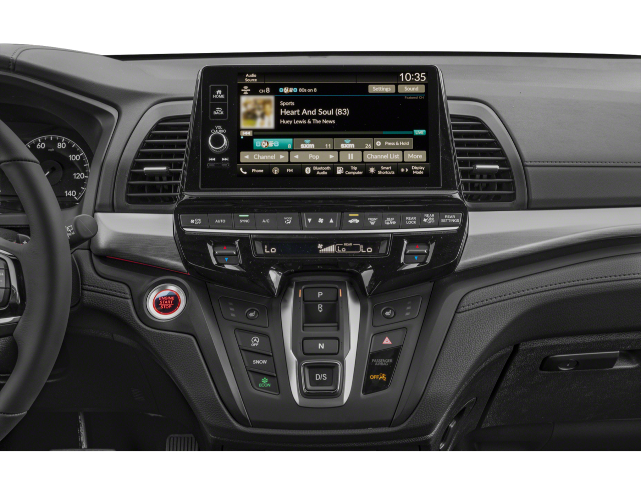 - Radio: 160-Watt AM/FM/HD/SiriusXM Audio System -inc: 7 speakers including subwoofer, 9" color touchscreen display, 7" TFT Meter, Bluetooth HandsFreeLink, Bluetooth streaming audio, HondaLink, Speed-Sensitive Volume Compensation (SVC), Radio Data System (RDS), wireless Apple CarPlay compatibility, wireless Android Auto compatibility, 2.5-amp USB smartphone/audio interface, CabinTalk in-car PA system, illuminated steering wheel-mounted controls and fin-type roof-mounted antenna, All SiriusXM services require a subscription, sold separately by SiriusXM after the trial period, If you decide to continue service, the plan you choose will automatically renew at the then-current rates, Fees and taxes apply, See the SiriusXM customer agreement and privacy policy at www.siriusxm.com for full terms and how to cancel, which includes calling 1-866-635-2349, Available in the 48 contiguous U.S, and D.C, Some services and features are subject to device capabilities and location restrictions, All fees, content and features are subject to change, SiriusXM, Pandora and all related logos are trademarks of Sirius XM Radio Inc, and its respective subsidiaries
